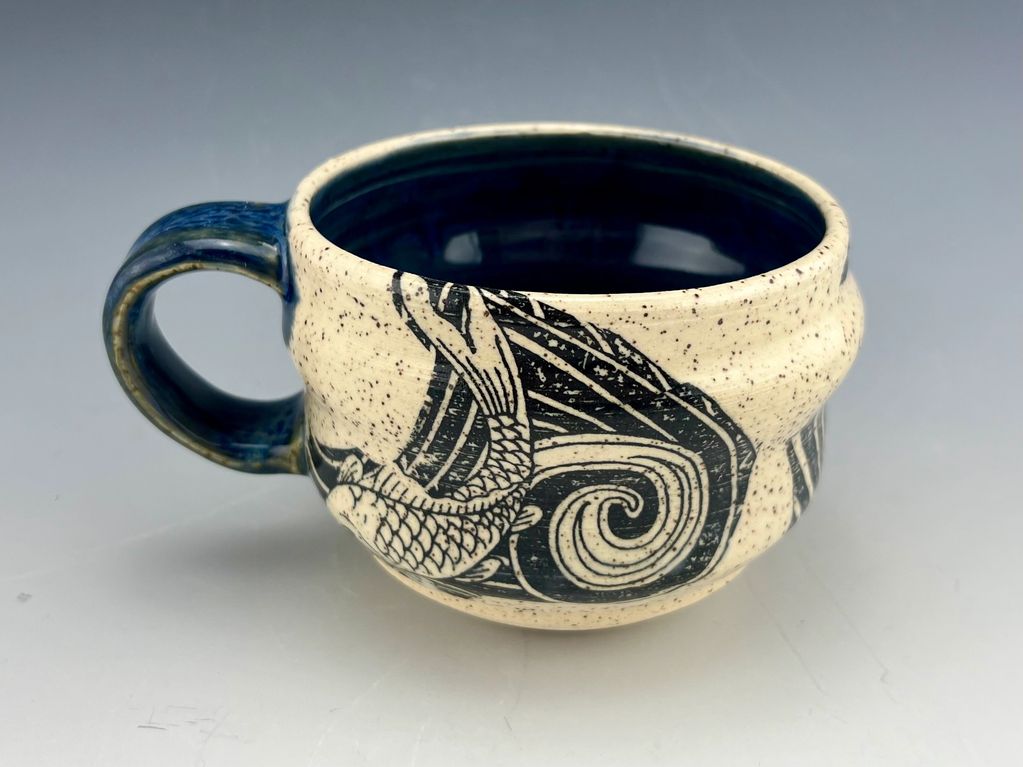 I create in both mid-fire and high-fire clay mediums— reflective of the surroundings and communities in which I work: the Pacific Northwest Craftsman style of Whidbey Island as well as the casual modernism of Southern California. I use glazing styles meant to create movement on the form, even after it’s left the wheel. I also incorporate decals into my designs that give each piece a sense of play.